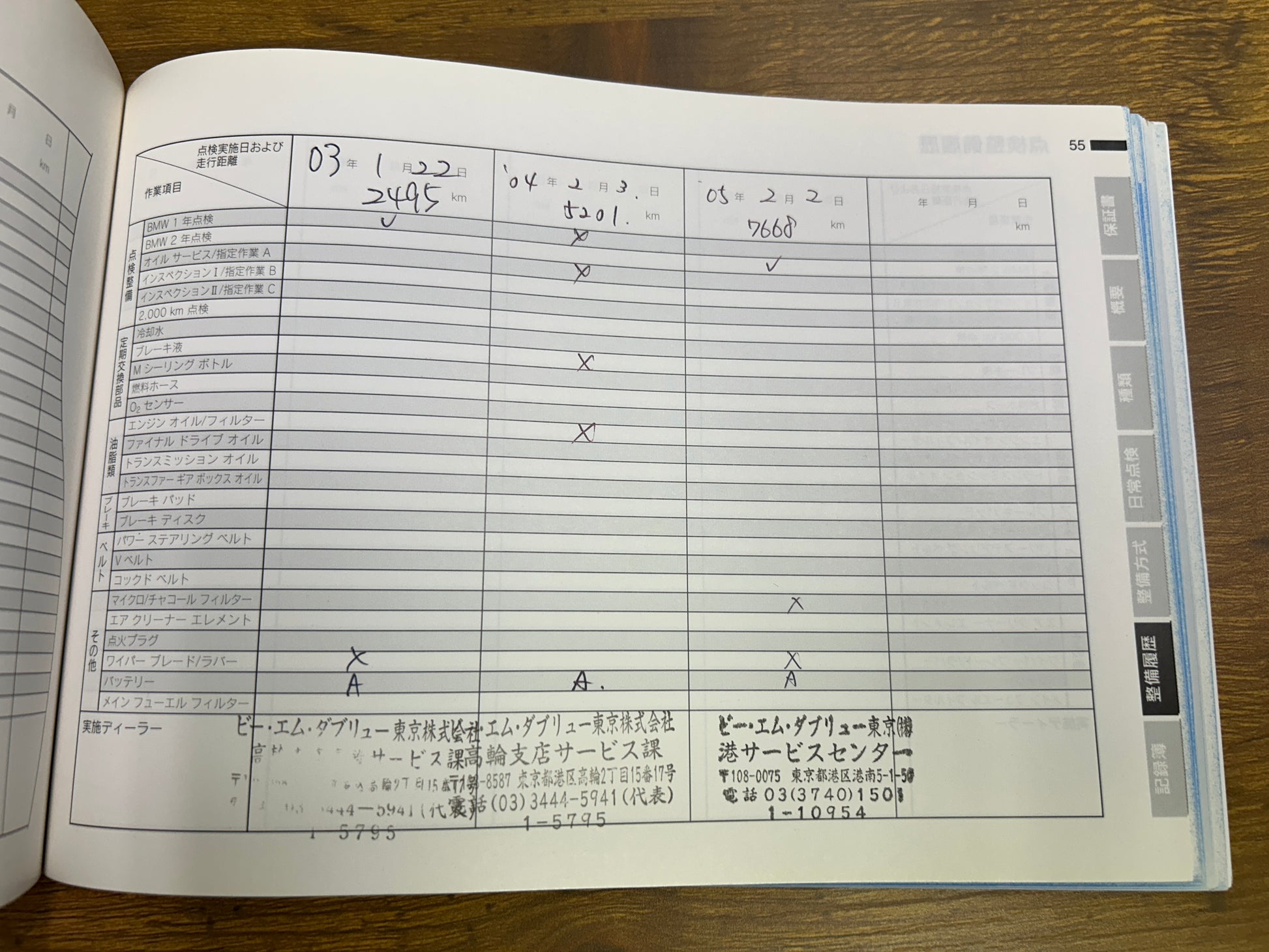 Service and mileage records
