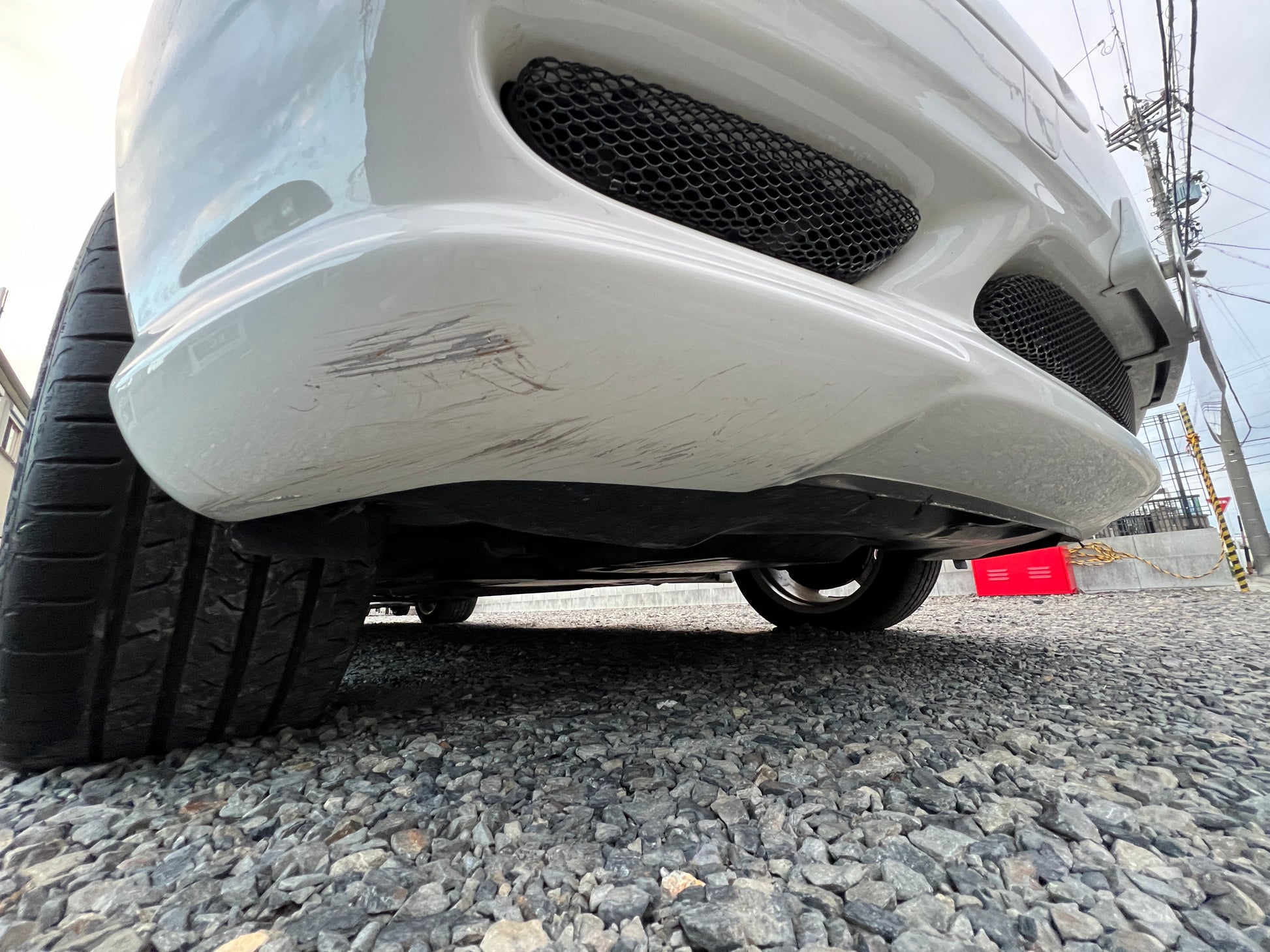 - deutliche Kratzer an den Stoßfängern (siehe Foto)