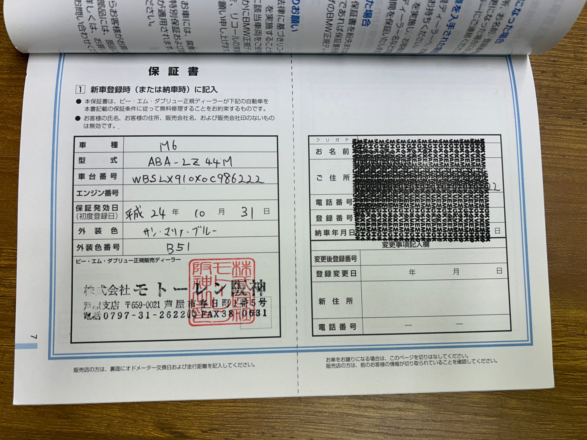 - Fahrgestellnummer: WBSLX910X0C986222